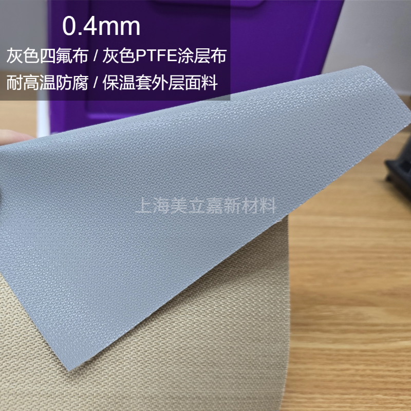 这款型号为 ADP-004 的单面四氟布,是本系列中涂层颜色最浅的一款,在高度耐用的本色(金黄色)机织玻璃纤维基布上覆有银灰色的 PTFE 涂层。其物理克重精准控制在 560 g/m²,兼顾了明亮整洁的外观与工业级的严苛防护需求。未涂覆的本色背面确保了在工业缝纫过程中具备良好的柔韧性与摩擦力,是定制高端可拆卸保温套的理想防护面料。